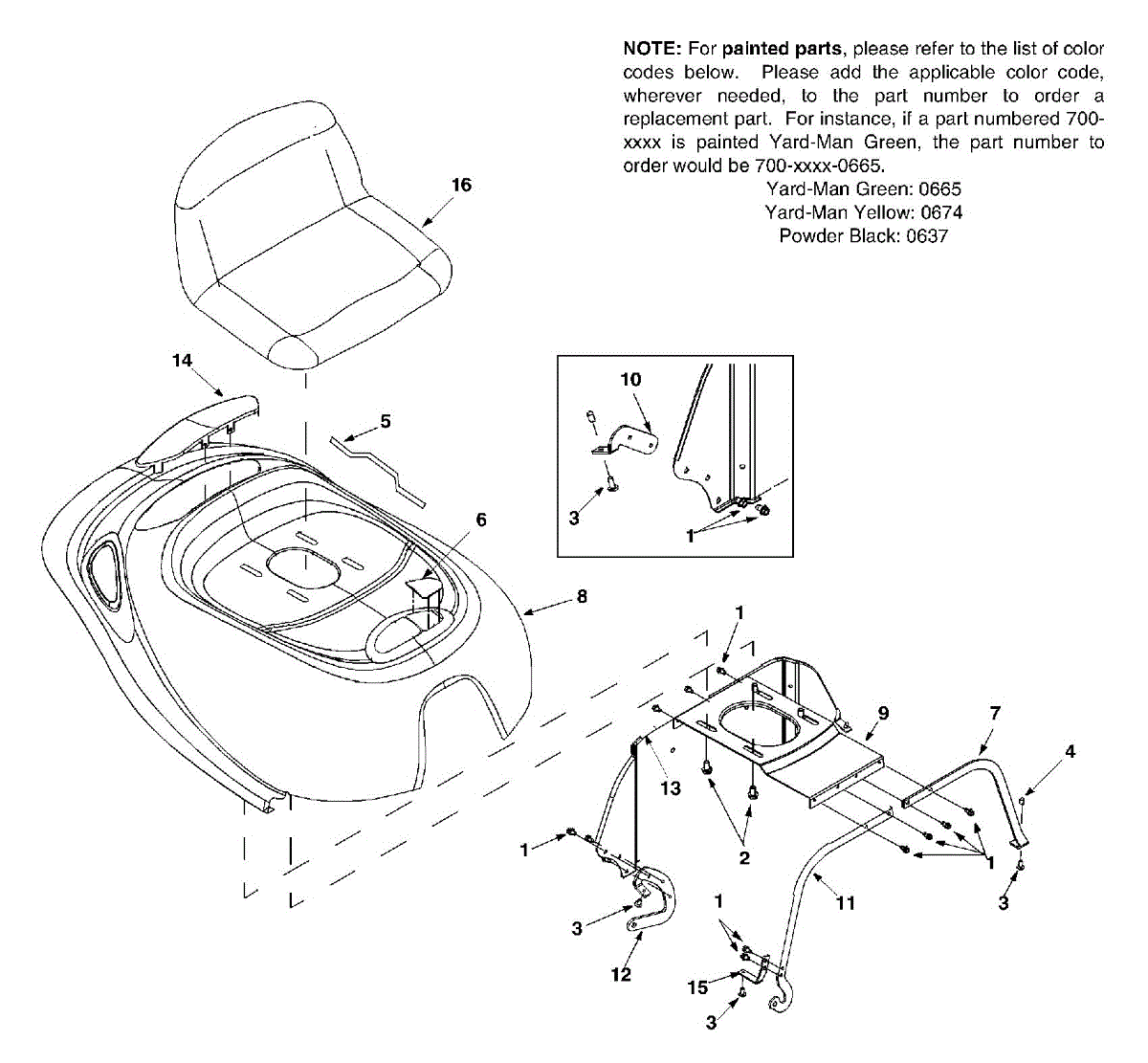 Parts for Yard-Man 13A-328-402 / 2002: Seat & Hood Parts