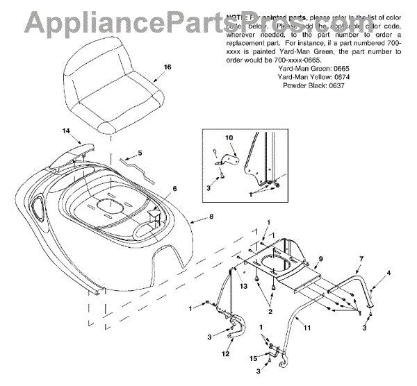 Parts for Yard-Man 13B-325-401 / 2002: Seat & Hood Parts
