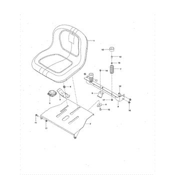 Seat suspension spring for riding mowers and tractors. Secures and supports the seat while allowing movement for operator comfort. Replace if broken, worn, or missing.
