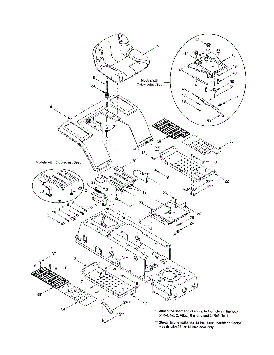 Replacement seat for lawn tractors and riding mowers. Installs on the operator platform. Needed when original seat is cracked, torn, or broken.