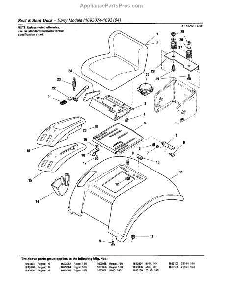 Parts for Simplicity 1693074: Seat & Seat Deck (1693074-1693104) Parts