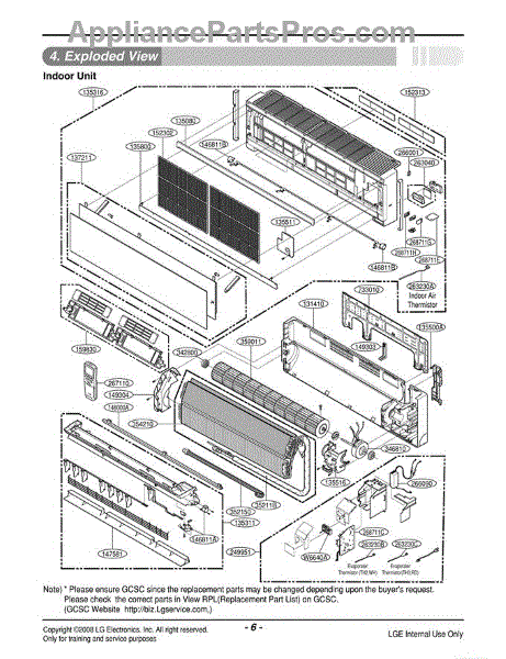 The Blower Wheel Bearing is an OEM part for LG air conditioners. This bearing supports the blower wheel, ensuring smooth rotation and efficient airflow throughout the unit.