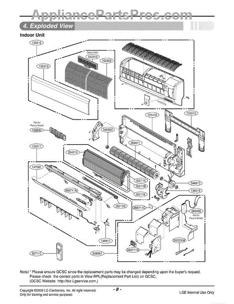 The Blower Wheel Bearing is an OEM part for LG air conditioners. This bearing supports the blower wheel, ensuring smooth rotation and efficient airflow throughout the unit.