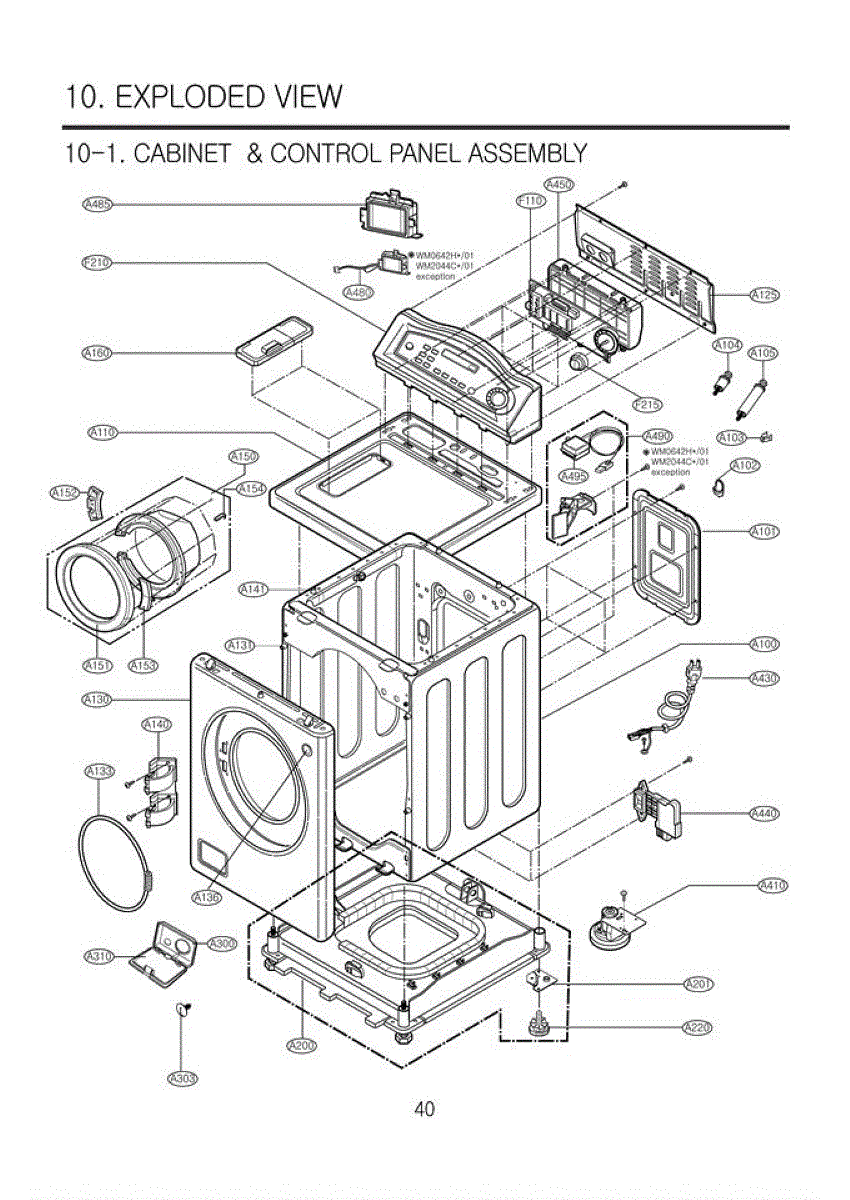 Cabinet base assembly for washers. Replaces cracked, rusted, or corroded base frames. Installs at bottom of washer cabinet to support unit weight.