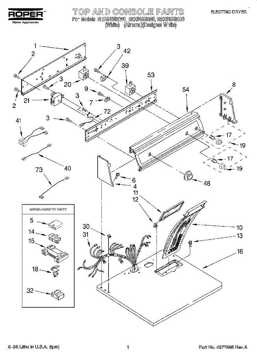 Temperature jumper wire for dryers. Connects temperature sensors and controls. Replace if wire is damaged, frayed, corroded, or has broken connectors.