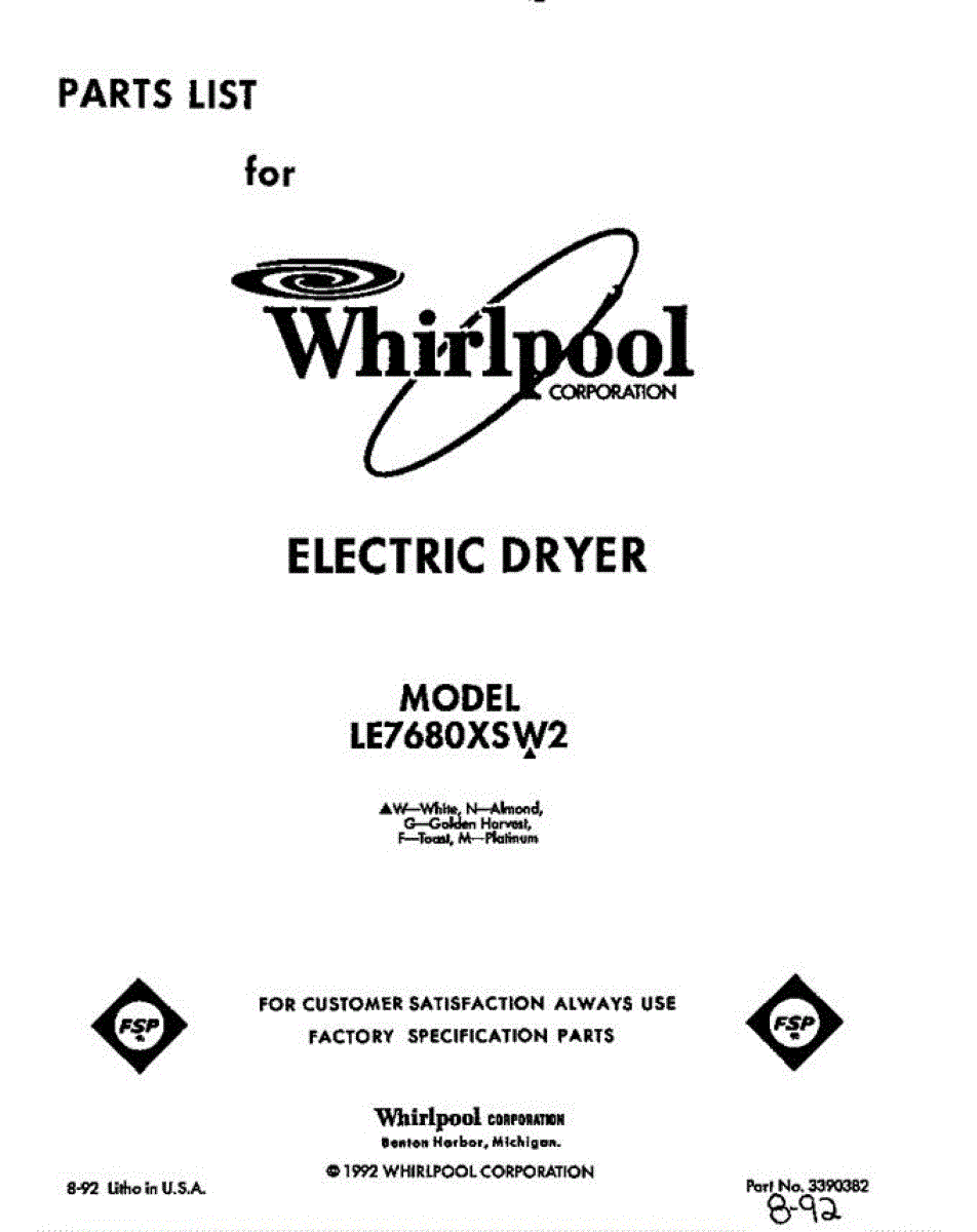 Parts for Whirlpool LE7680XSW2: Parts Parts
