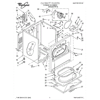 Fits all Whirlpool-made dryers (Whirlpool, Kenmore with prefix 110, Roper, KitchenAid, and Estate). Matching belt 341241 and rear support rollers 349241T. Whirlpool dryer repair manual 677818L.