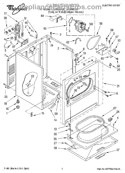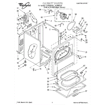 Fits all Whirlpool-made dryers (Whirlpool, Kenmore with prefix 110, Roper, KitchenAid, and Estate). Matching belt 341241 and rear support rollers 349241T. Whirlpool dryer repair manual 677818L.