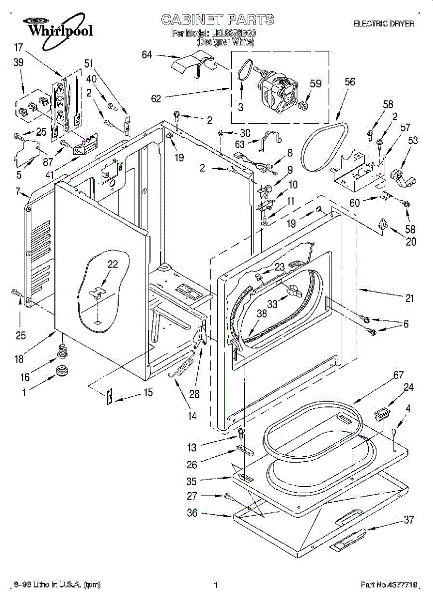 Dryer outer cabinet that houses internal components. Replace if your cabinet is rusted, dented, cracked, or damaged, compromising structural integrity.