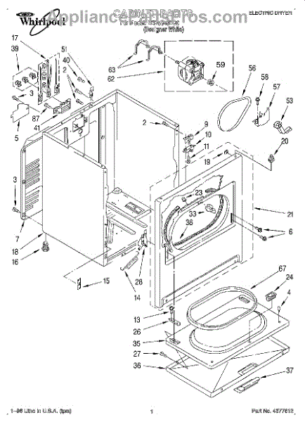 Fits all Whirlpool-made dryers (Whirlpool, Kenmore with prefix 110, Roper, KitchenAid, and Estate). Matching belt 341241 and rear support rollers 349241T. Whirlpool dryer repair manual 677818L.