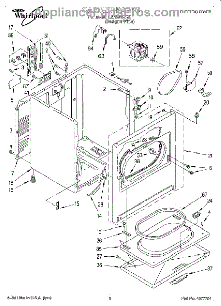 Fits all Whirlpool-made dryers (Whirlpool, Kenmore with prefix 110, Roper, KitchenAid, and Estate). Matching belt 341241 and rear support rollers 349241T. Whirlpool dryer repair manual 677818L.