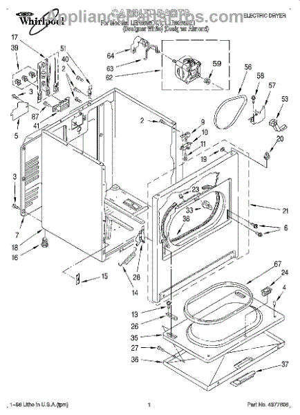 Fits all Whirlpool-made dryers (Whirlpool, Kenmore with prefix 110, Roper, KitchenAid, and Estate). Matching belt 341241 and rear support rollers 349241T. Whirlpool dryer repair manual 677818L.
