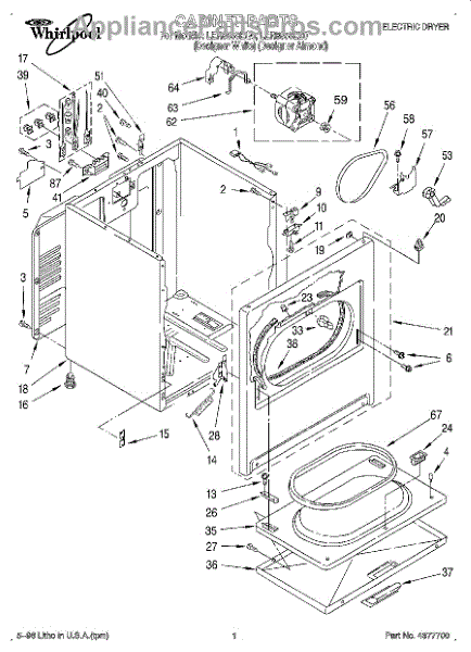 Fits all Whirlpool-made dryers (Whirlpool, Kenmore with prefix 110, Roper, KitchenAid, and Estate). Matching belt 341241 and rear support rollers 349241T. Whirlpool dryer repair manual 677818L.