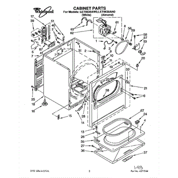 Fits all Whirlpool-made dryers (Whirlpool, Kenmore with prefix 110, Roper, KitchenAid, and Estate). Matching belt 341241 and rear support rollers 349241T. Whirlpool dryer repair manual 677818L.
