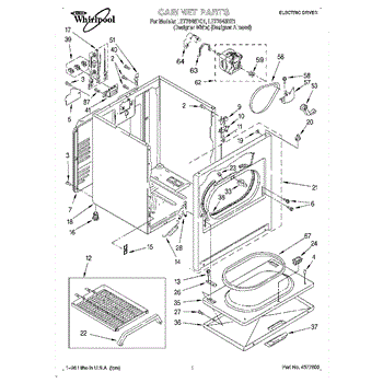 Fits all Whirlpool-made dryers (Whirlpool, Kenmore with prefix 110, Roper, KitchenAid, and Estate). Matching belt 341241 and rear support rollers 349241T. Whirlpool dryer repair manual 677818L.
