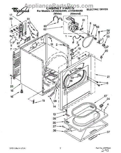 Parts for Whirlpool LEV6848AW0: 01 - Section Parts