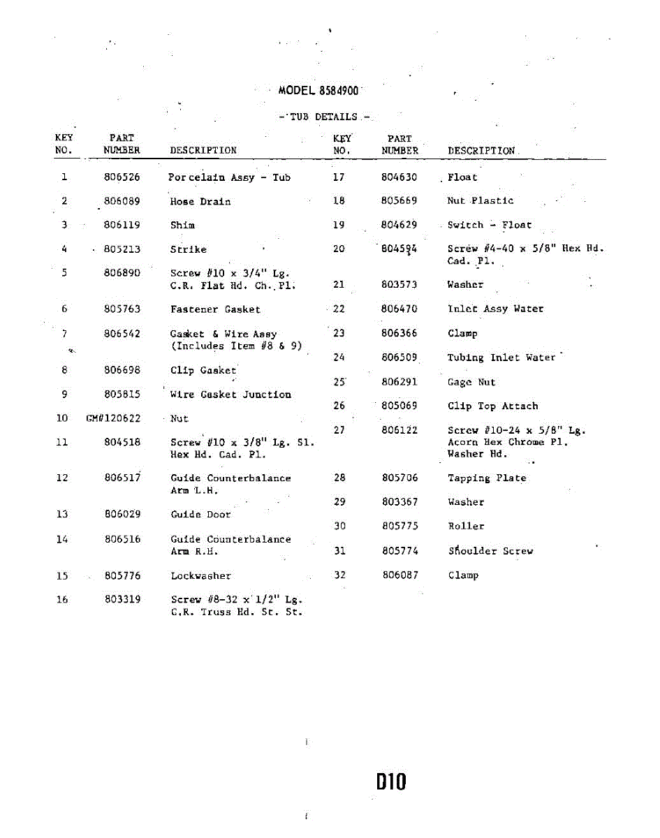 Parts for Whirlpool 8584900: 22 - Section Parts