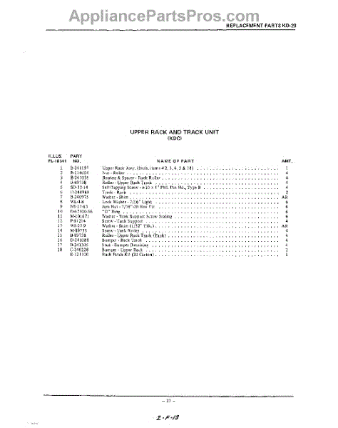Parts for Kitchenaid KDI20: 27 - Section Parts