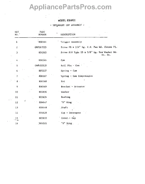 Parts for Whirlpool 8584900: 30 - Section Parts