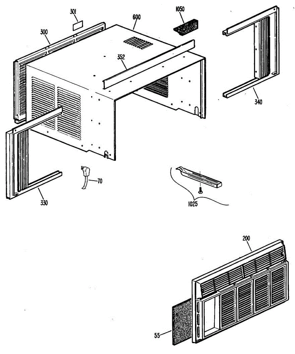 Right side curtain assembly for air conditioner units. Replaces cracked, broken, or missing side curtains that seal the gap between the unit and window.