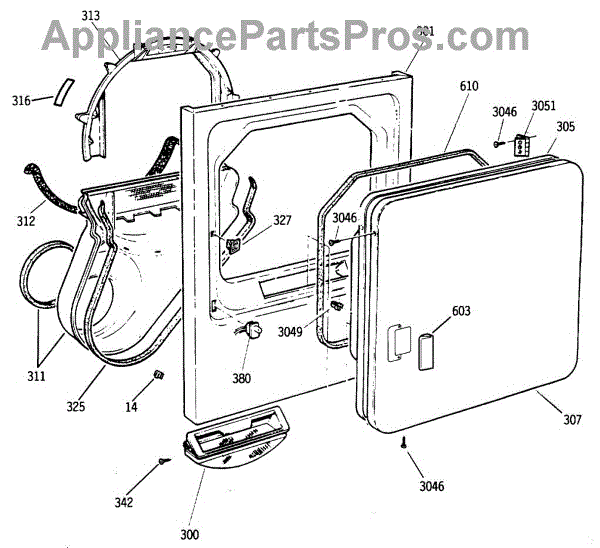 The Handle Door is an OEM part for GE dryers. This door handle allows for easy opening and closing of the dryer door, providing a secure grip to access the drum.