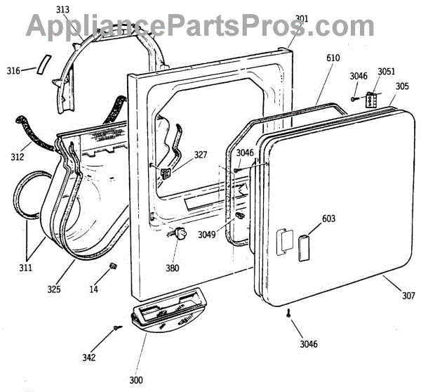 The Handle Door is an OEM part for GE dryers. This door handle allows for easy opening and closing of the dryer door, providing a secure grip to access the drum.