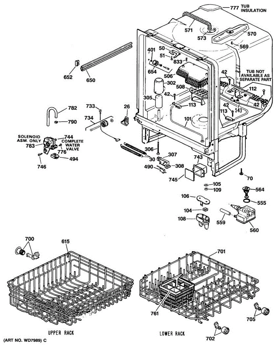 Replacement silverware basket with handle for your dishwasher. Needed when original basket is cracked, broken, or has worn holes that let utensils fall through.