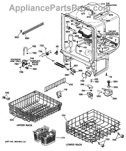 Replacement silverware basket with handle for your dishwasher. Needed when original basket is cracked, broken, or has worn holes that let utensils fall through.