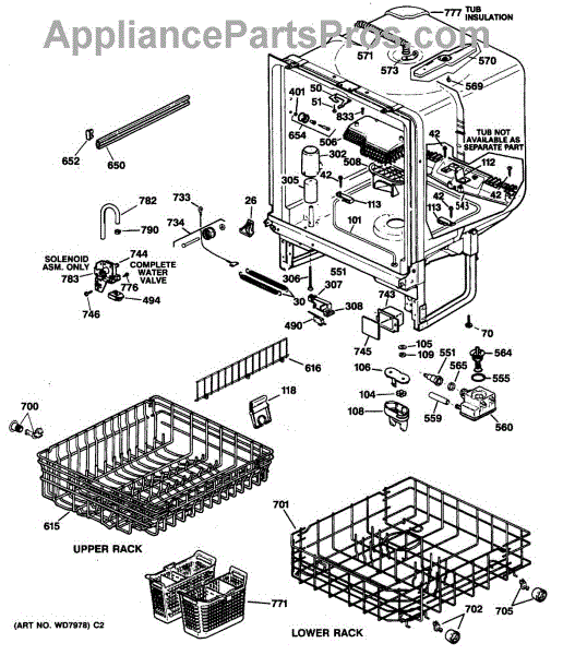 The Upper Rack is an OEM replacement part for GE dishwashers. It provides movable shelf space along the top of the dishwasher interior for washing plates, bowls, and other dishes. The shelves feature an adjustable design that accommodates various sizes and configurations of dishware. Causes of failure include normal wear and tear, accidental impacts that damage shelves or cleaning chemicals stripping away protective coatings. Symptoms of a bad upper rack can include: