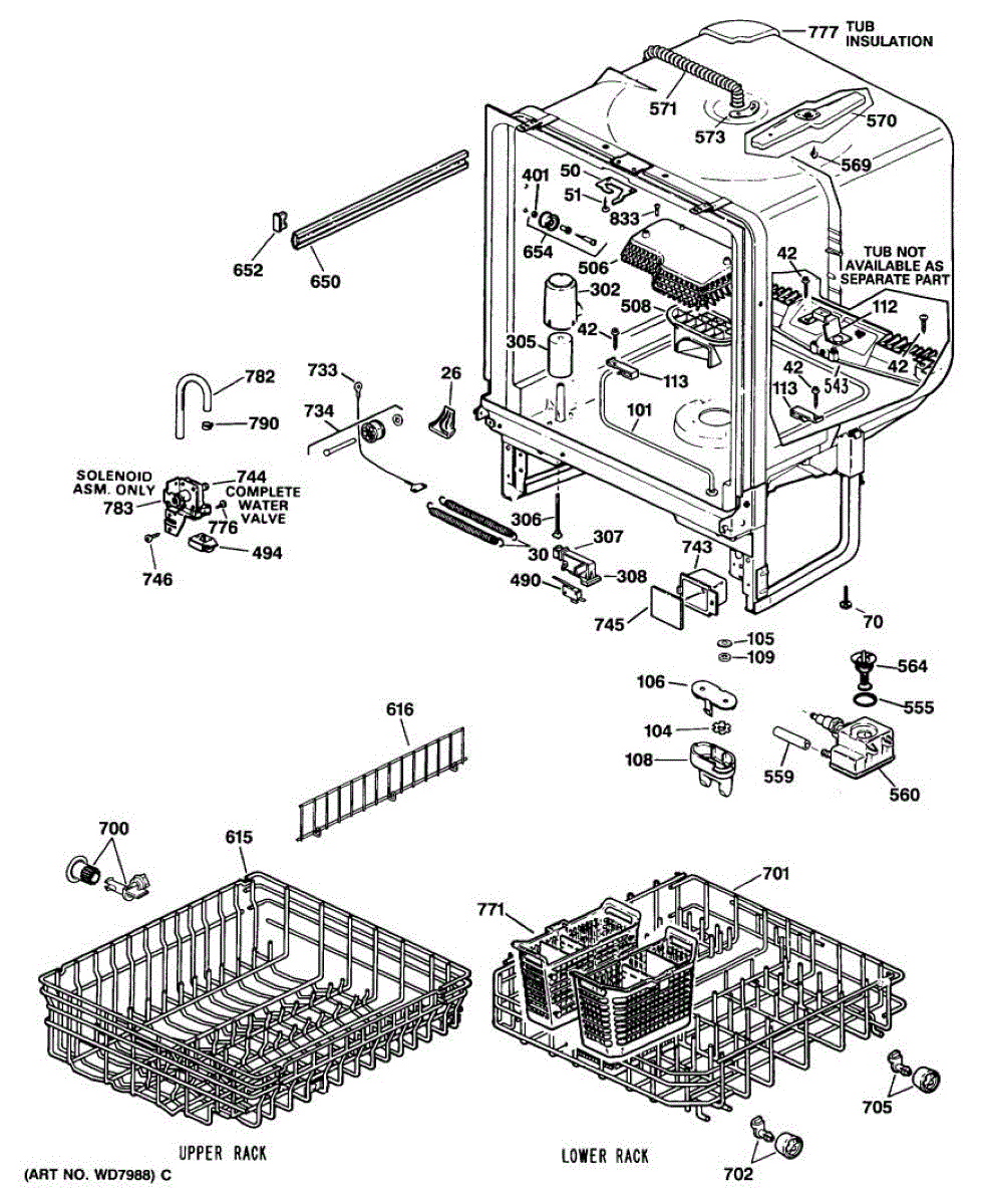 Replacement silverware basket with handle for your dishwasher. Needed when original basket is cracked, broken, or has worn holes that let utensils fall through.