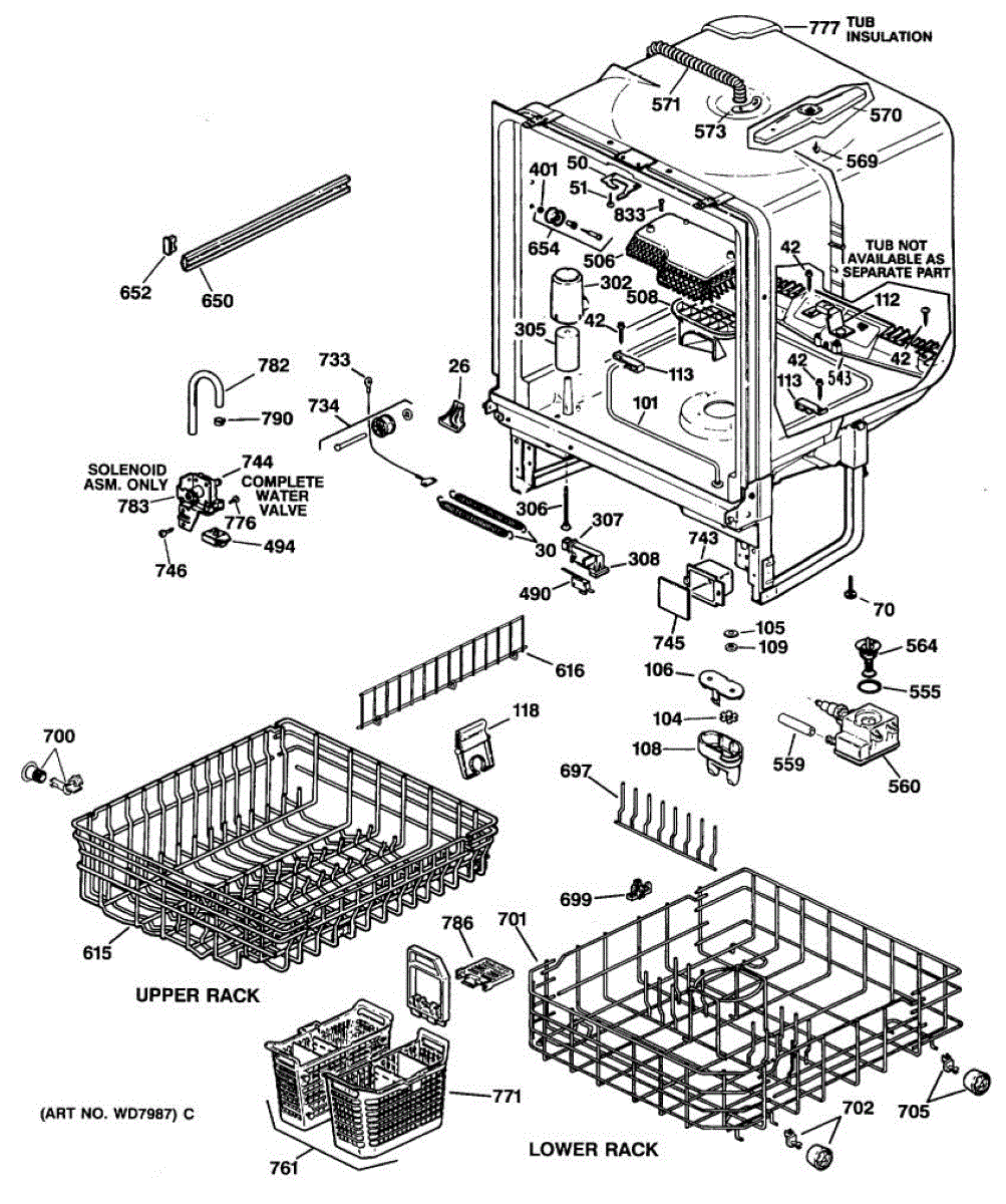 Replacement silverware basket with handle for your dishwasher. Needed when original basket is cracked, broken, or has worn holes that let utensils fall through.