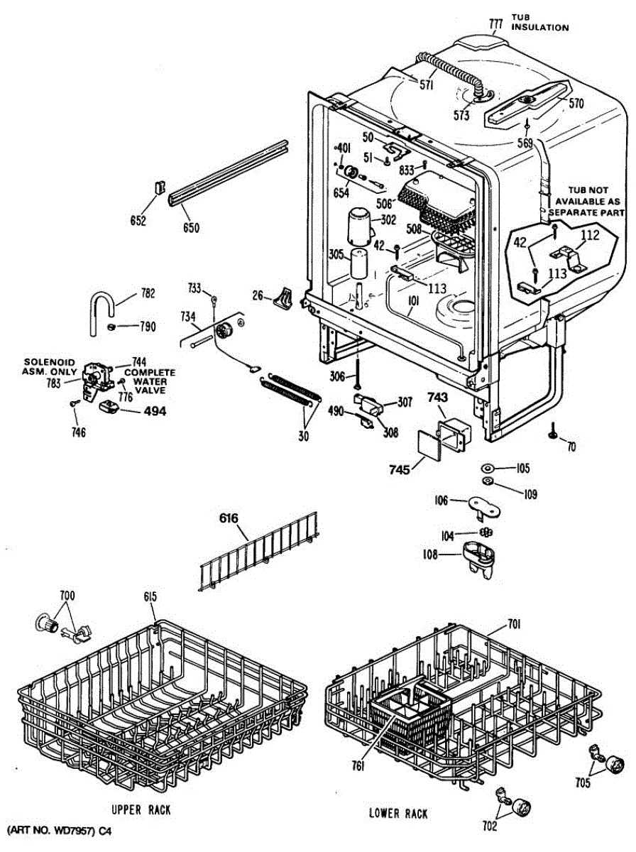 Prevents water leaks at the dishwasher door corners during wash cycles. Replace if you notice leaking along the bottom of the door. Clips onto tub rail.