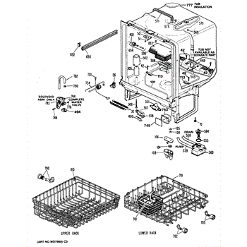 The Upper Rack is an OEM replacement part for GE dishwashers. It provides movable shelf space along the top of the dishwasher interior for washing plates, bowls, and other dishes. The shelves feature an adjustable design that accommodates various sizes and configurations of dishware. Causes of failure include normal wear and tear, accidental impacts that damage shelves or cleaning chemicals stripping away protective coatings. Symptoms of a bad upper rack can include: