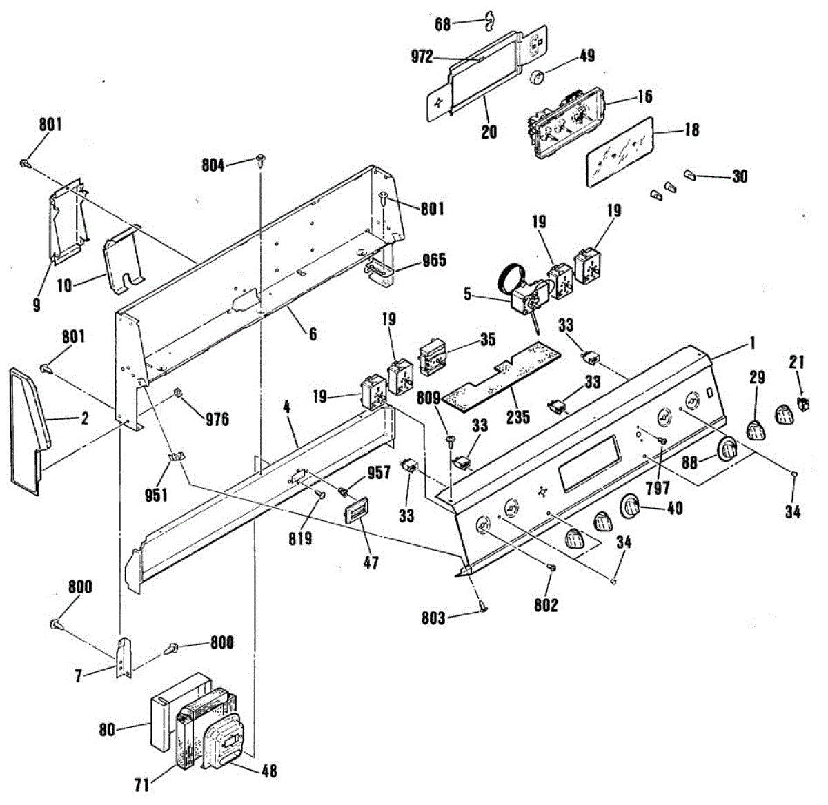 Mounting screw for ranges and ovens. Secures panels, brackets, or internal components. Replace if stripped, missing, or damaged during repair work.