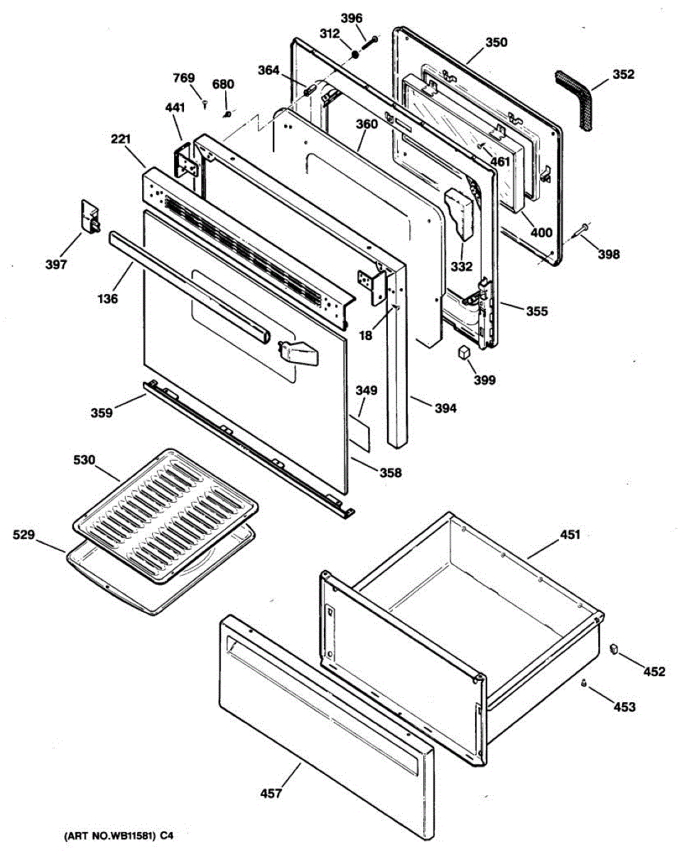 Inner door panel for electric ranges. Installs between the outer door and window. Replace if cracked, damaged, or discolored from heat exposure.