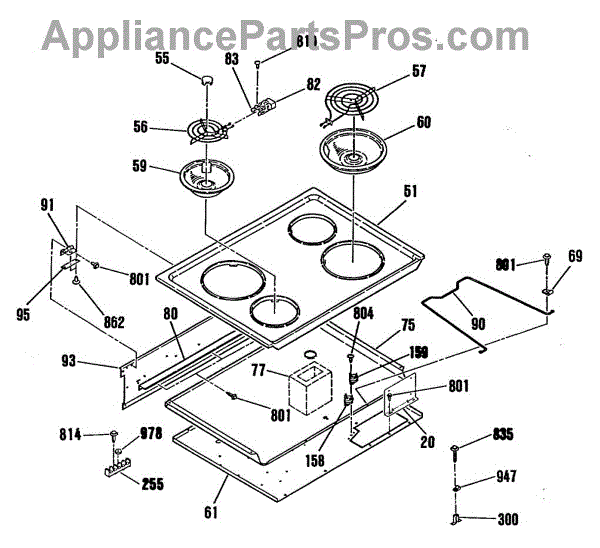 Spacer for cooktop installation. Replaces worn, cracked, or missing spacers that maintain proper clearance between components during mounting.