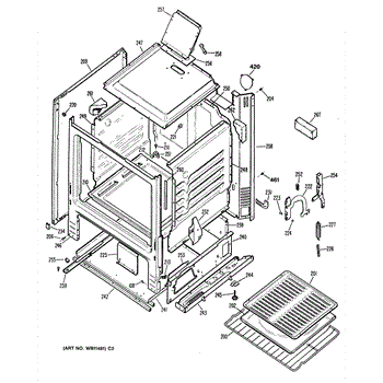 Bottom right oven rack slide for gas ranges. Guides and supports oven racks for smooth gliding. Replace if cracked, bent, or missing for proper rack operation.