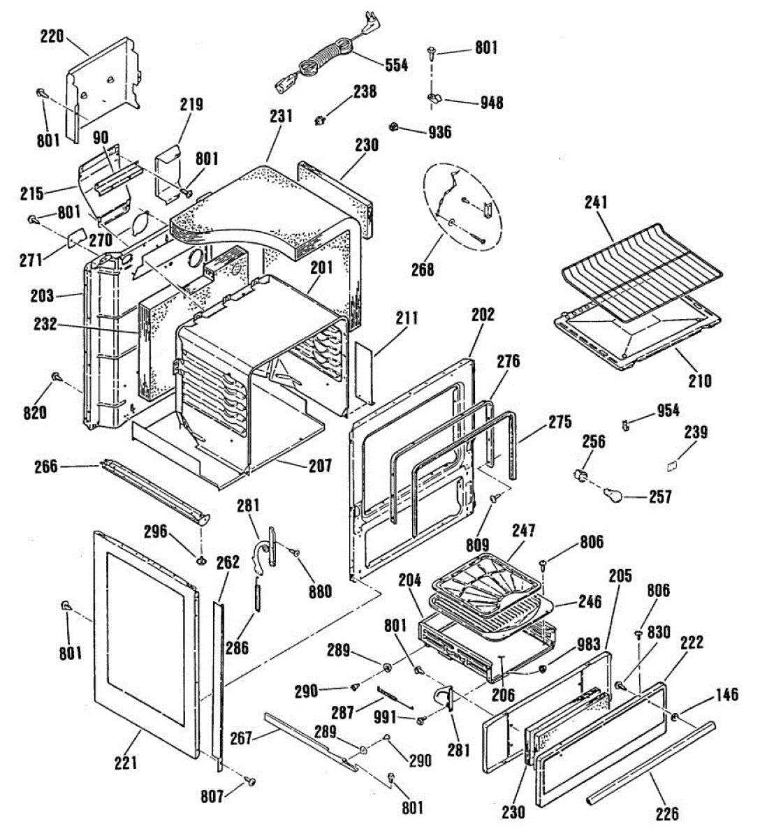 Left side oven door hinge provides smooth opening and closing operation. Replace if cracked, seized, worn, or binding. Mounts to oven cavity interior.