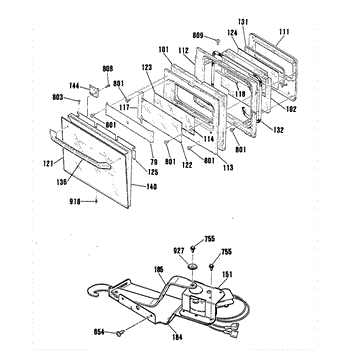 This oven door latch assembly secures the door during the self-clean cycle and reports lock status to the control. Replace a worn or failed latch to restore safe locking and reliable self-clean operation.