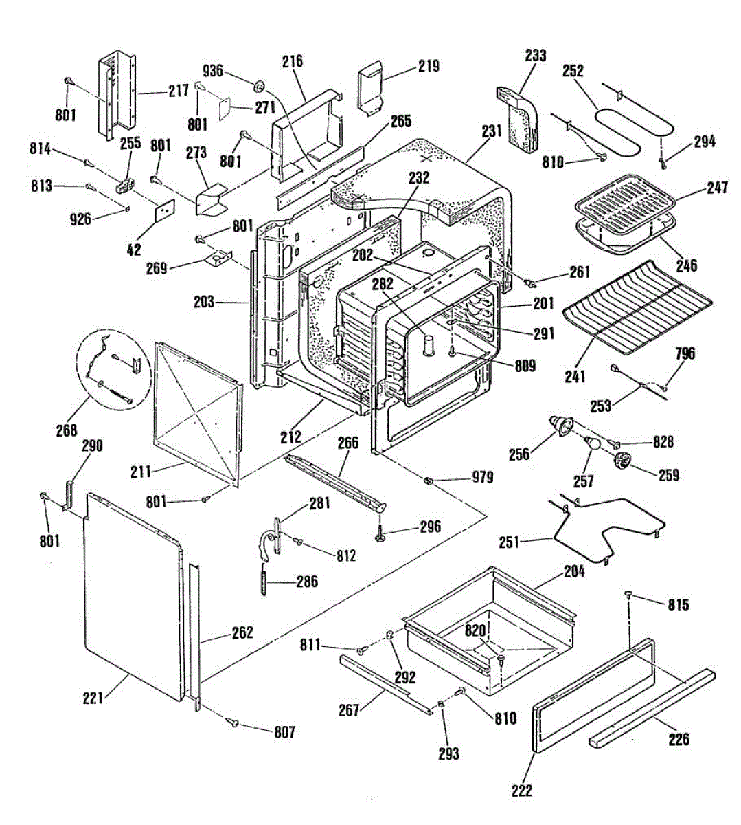 Left side oven door hinge provides smooth opening and closing operation. Replace if cracked, seized, worn, or binding. Mounts to oven cavity interior.