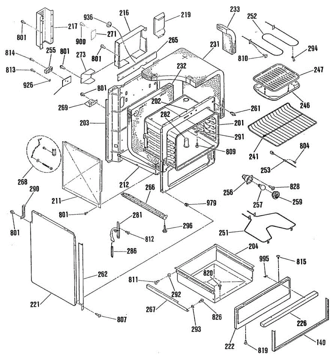 Left side oven door hinge provides smooth opening and closing operation. Replace if cracked, seized, worn, or binding. Mounts to oven cavity interior.