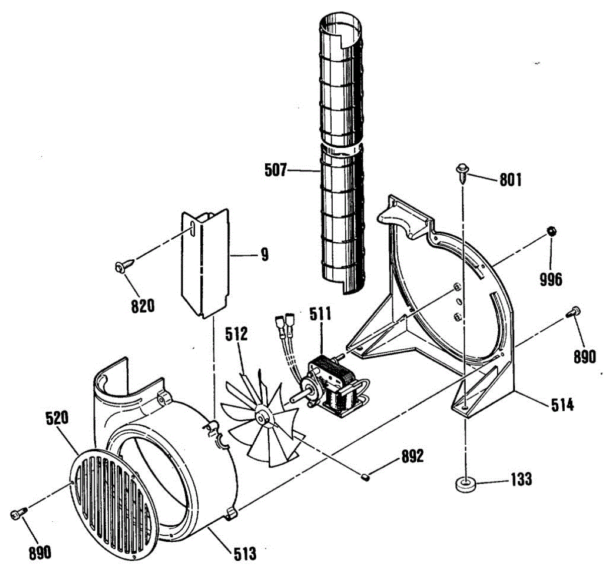 • Mounts and supports the blower wheel and motor assembly inside the dryer housing
