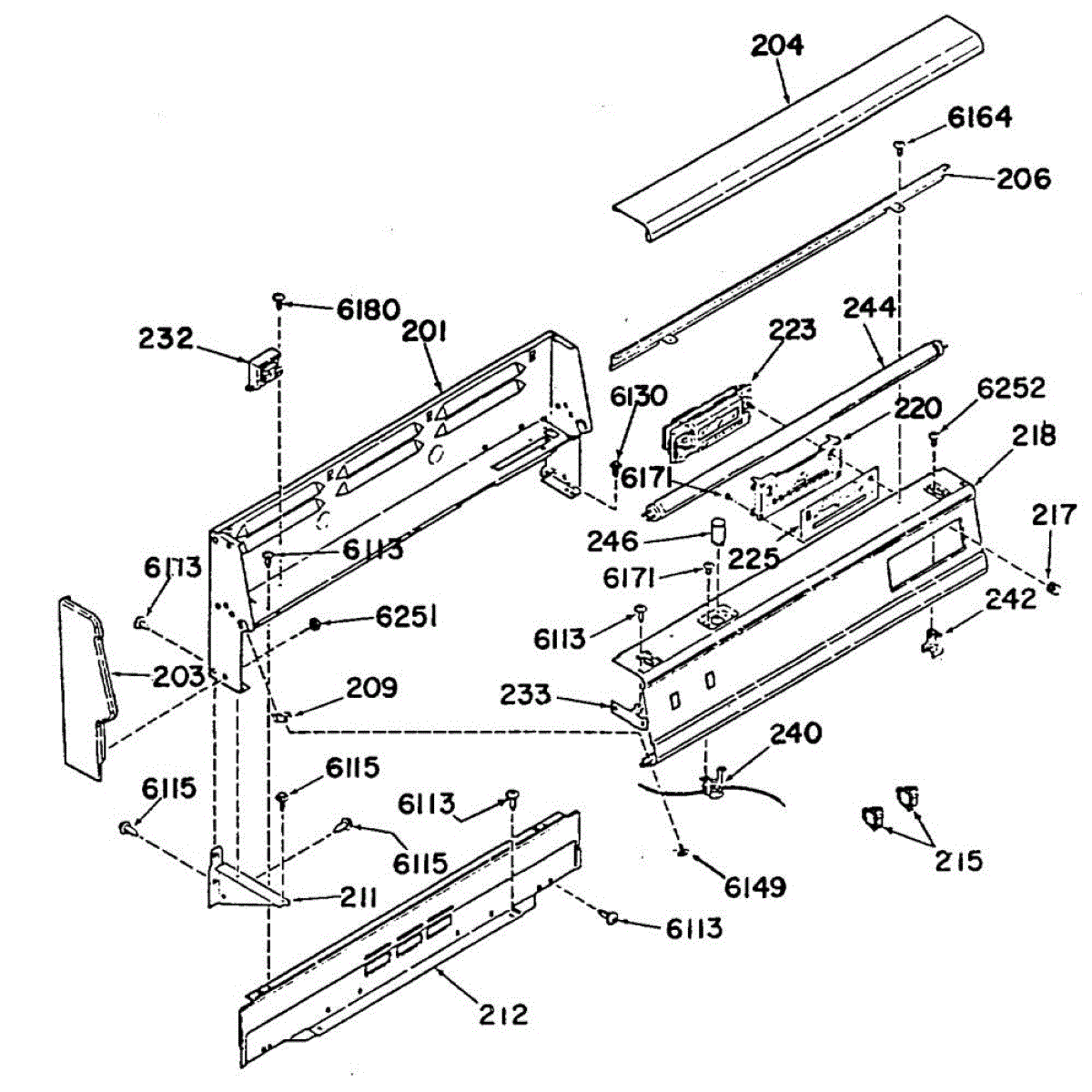 Mounting screw for ranges and ovens. Secures panels, brackets, or internal components. Replace if stripped, missing, or damaged during repair work.