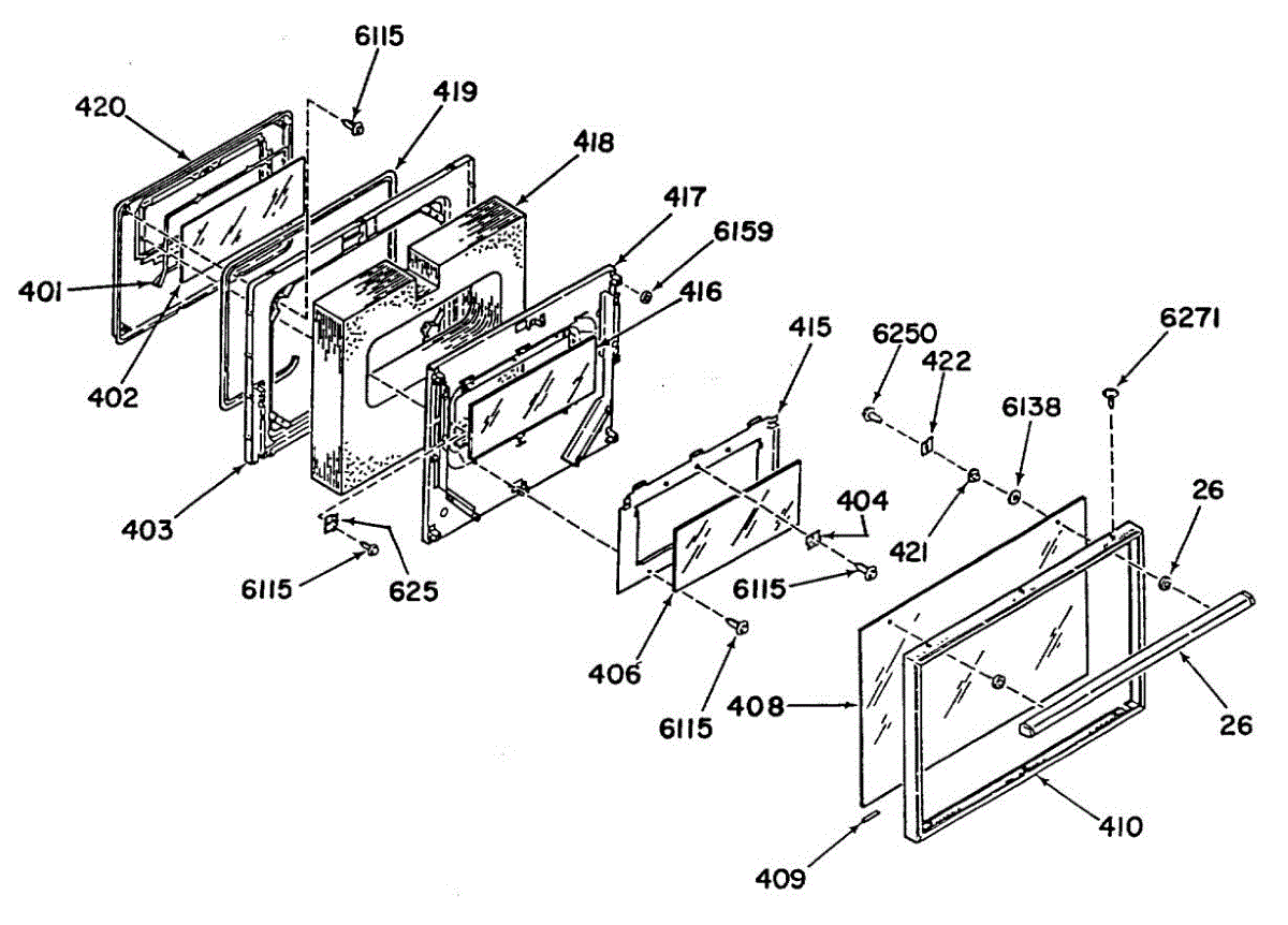Intermediate glass panel for oven doors. Installs between inner and outer door glass. Replace if cracked, shattered, or broken to restore appearance.