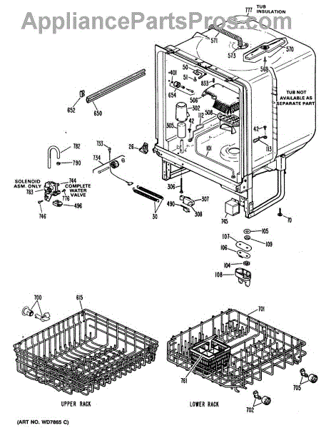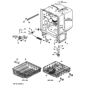 Replaces broken or cracked 3rd level spray arm assembly that mounts at the top of the tub. Includes mounting tabs and collar for secure installation.