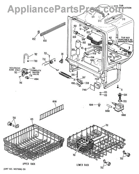 The Upper Rack is an OEM replacement part for GE dishwashers. It provides movable shelf space along the top of the dishwasher interior for washing plates, bowls, and other dishes. The shelves feature an adjustable design that accommodates various sizes and configurations of dishware. Causes of failure include normal wear and tear, accidental impacts that damage shelves or cleaning chemicals stripping away protective coatings. Symptoms of a bad upper rack can include: