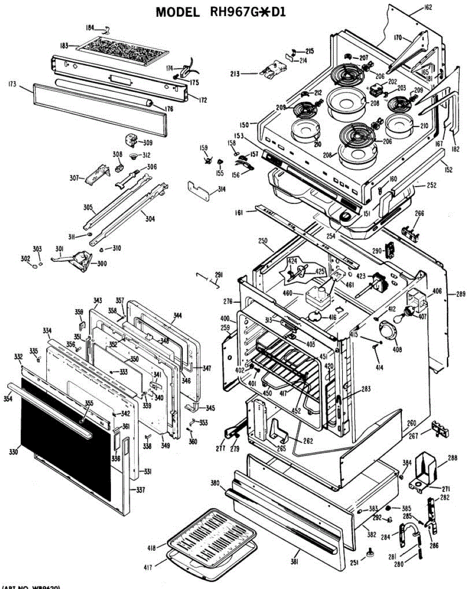 Deflector shield for electric ranges and wall ovens. Protects oven components from heat damage. Replace if cracked, warped, or missing to maintain safety.