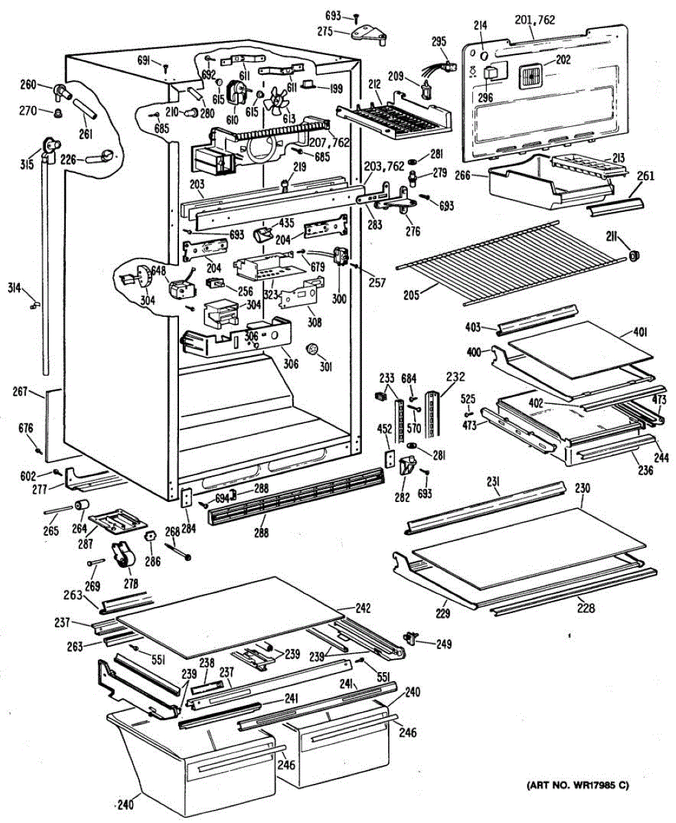 • Remove freezer shelves/ice bin and the rear panel to access the fan assembly