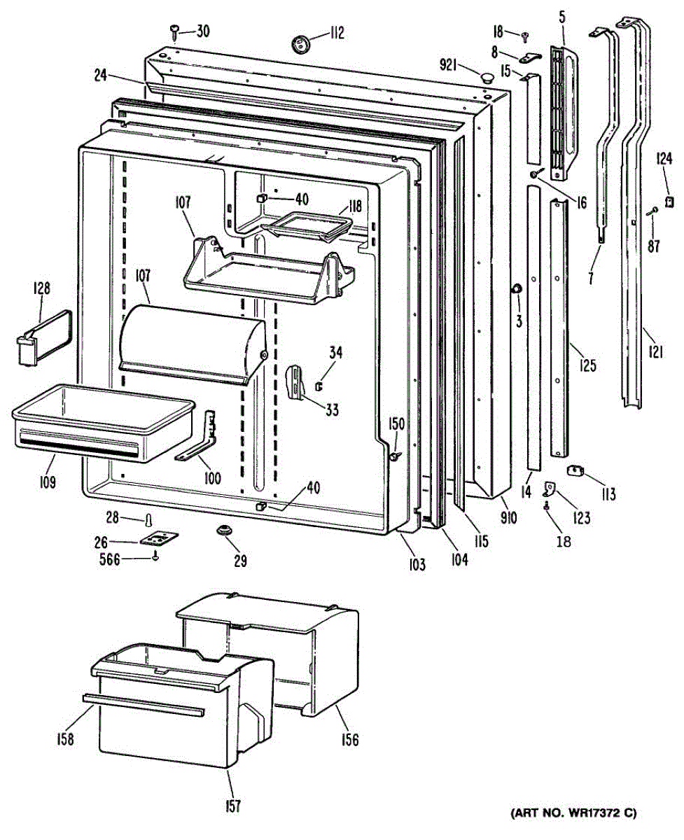 Seals the fresh food door to keep cold air in and prevent temperature loss. Replace if cracked, warped, or loose to restore efficiency. Confirm fit.