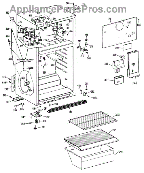 • Carries water between the inlet valve and the refrigerator's water system components